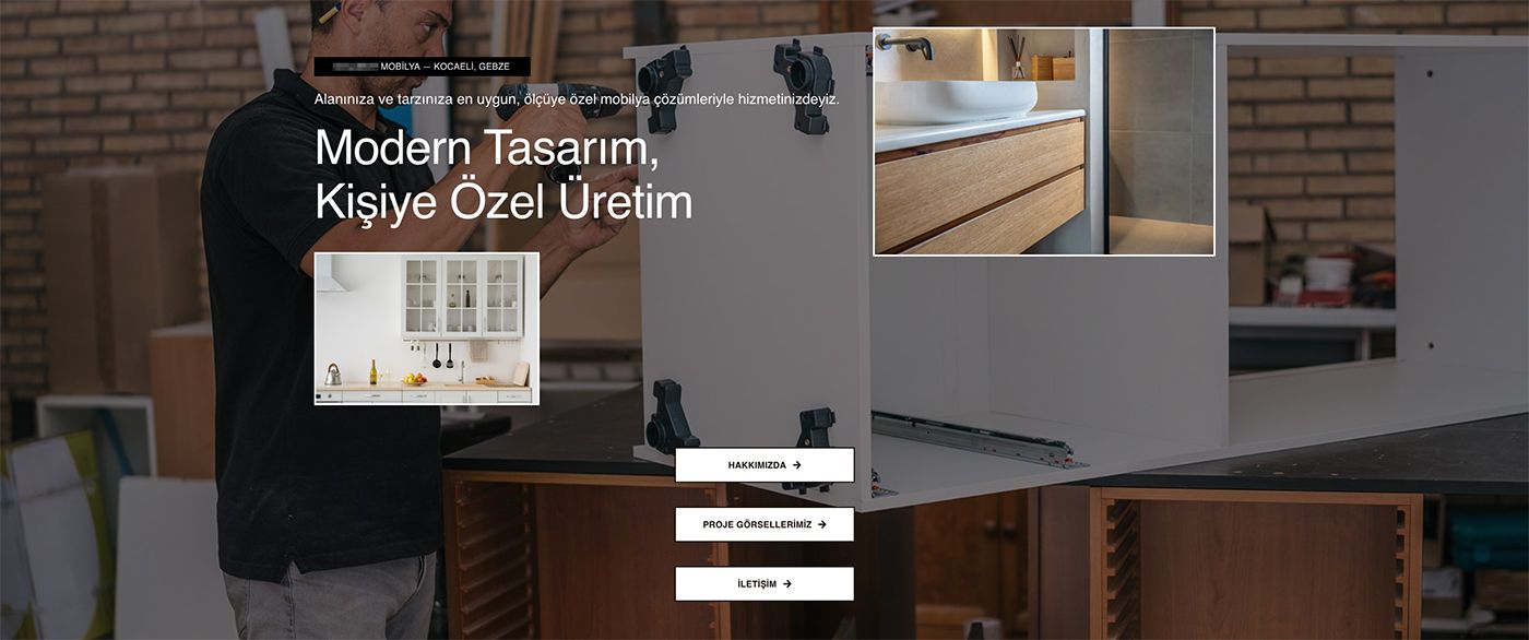 Mutfak dolabı, banyo dolabı, portmanto vb. üretimi yapan mobilya atölyesi web sitesi.