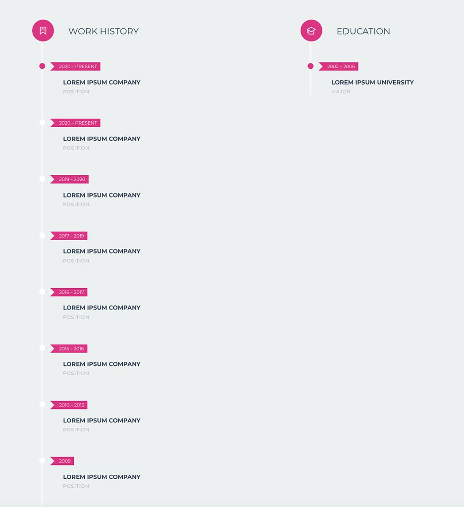 ABOUT ME bölümünde fotoğraf ve kişisel bilgiler yer alıyor. Sonrasında MORE sayfası ekledik ve İŞ DENEYİMİ ve EĞİTİM DURUMU bölümleri ekledik.