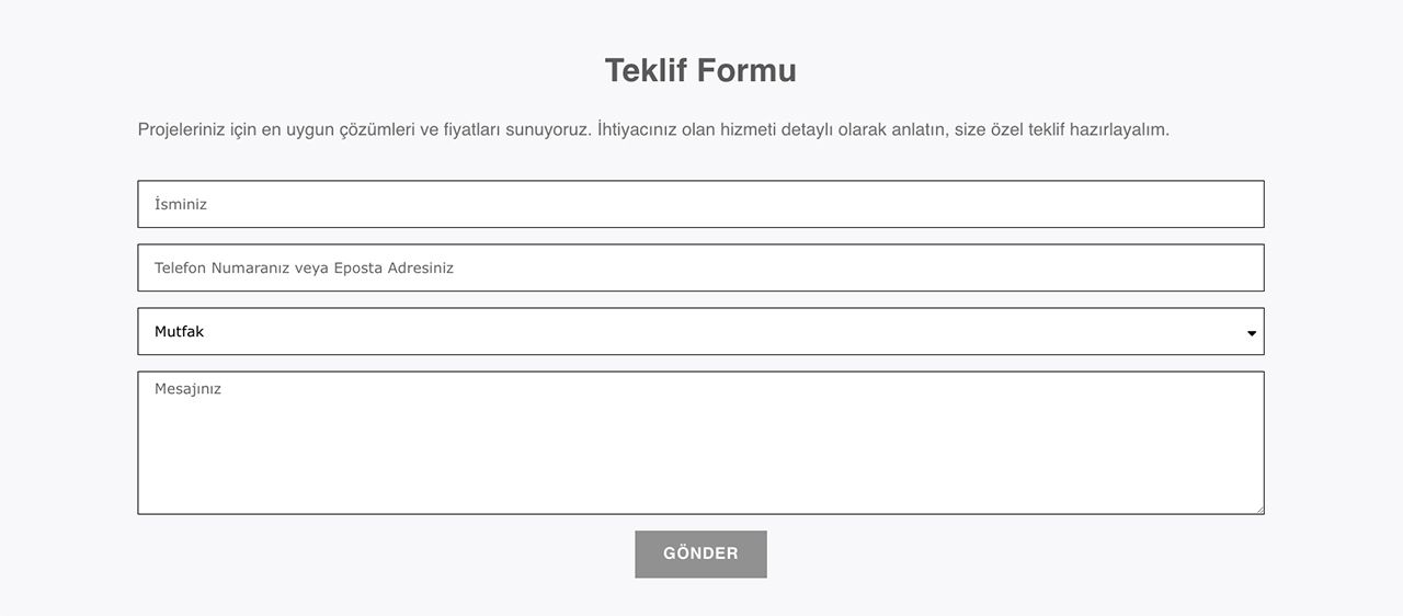Projelendirme hizmeti sunan firmalarda bu bölümde doğrudan Teklif Formu sunulabilir veya buton ile ilgili sayfaya yönlendirme yapılabilir.