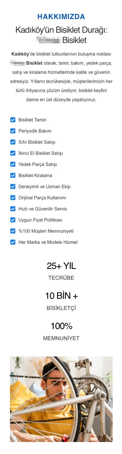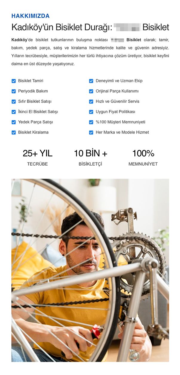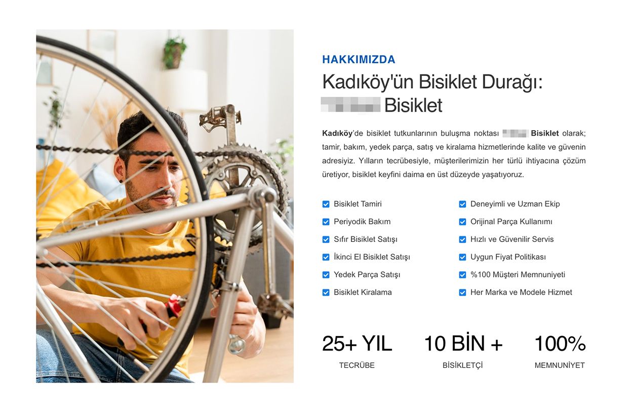 Masaüstü görünümde sol tarafta görsel kullanarak, sağ tarafta işletme hakkında kısa bilgi ve sunulan hizmetlerle beraber çeşitli istatistikler sunuldu.