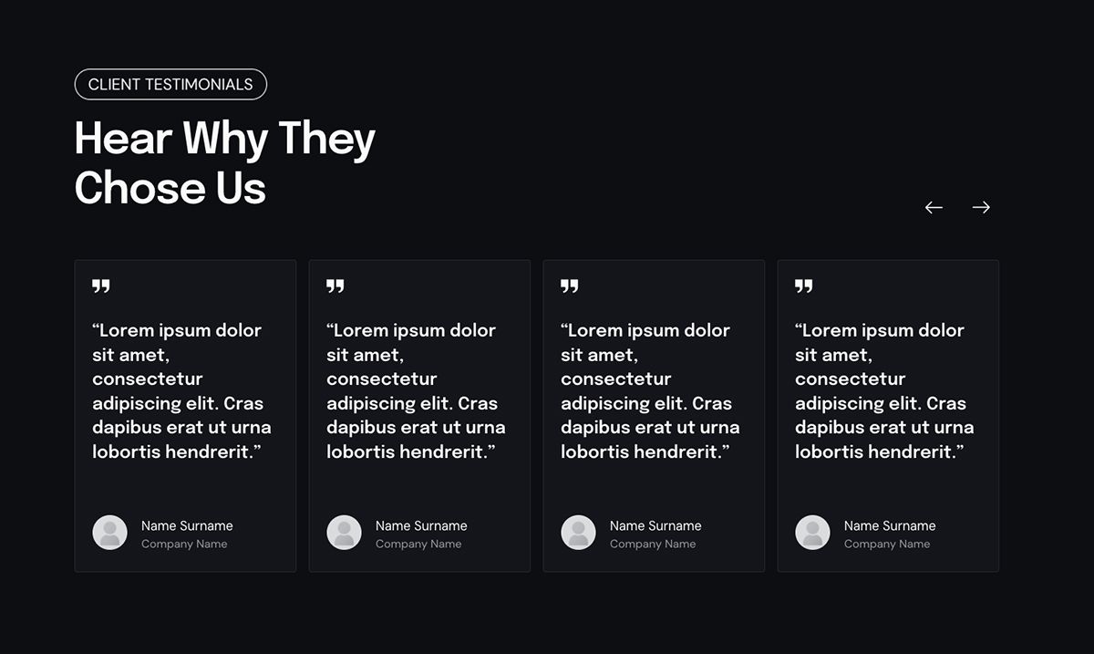 Müşteri yorumları kısa tutulacak, sağ üstteki oklarla ve yorum kutularında sürükleme yapılarak kaydırılabilecek.