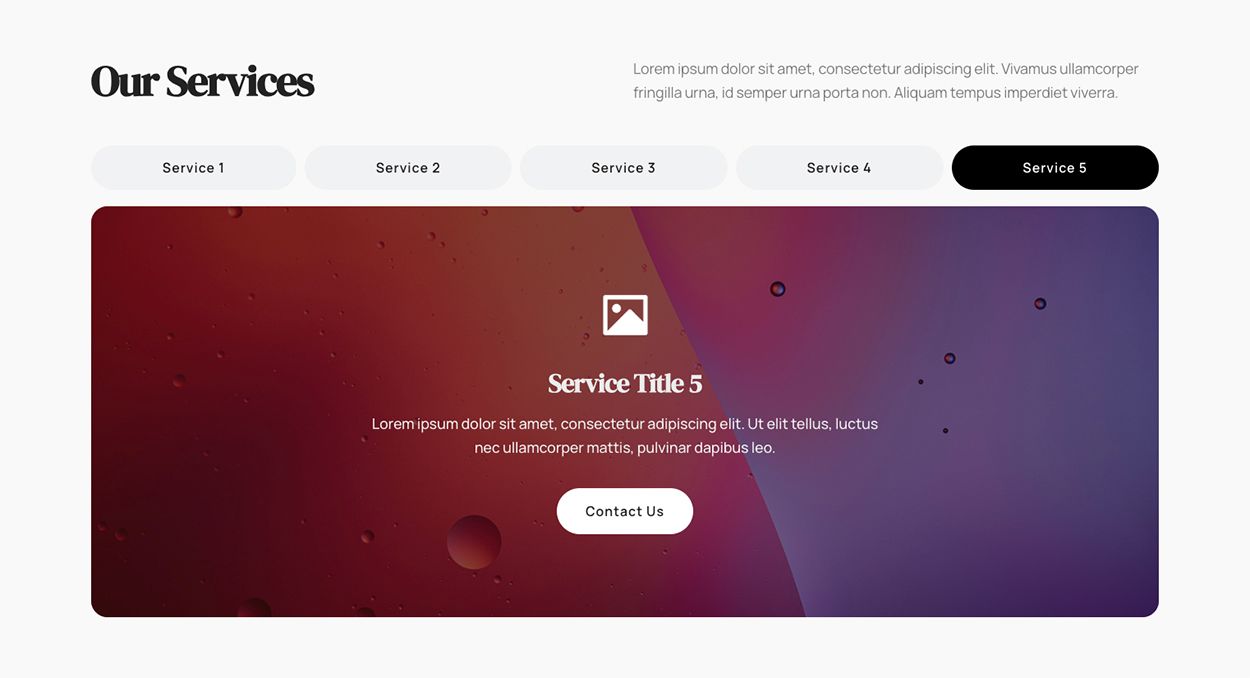 Aşağıda paylaştığım SERVICES bölümü hem Ana Sayfa’da hem de Services sayfasında kullanıldı.