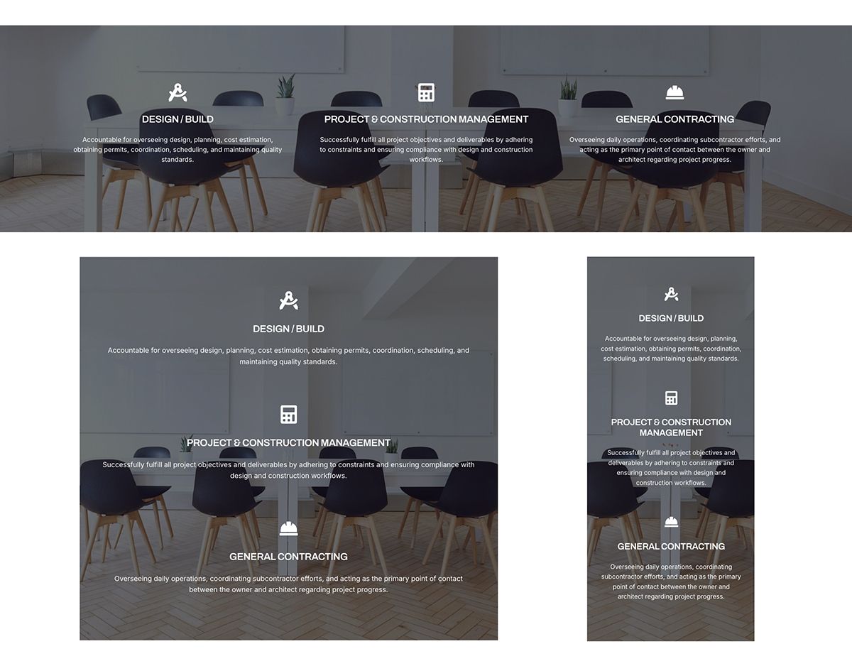 İlk hâlinde 3 farklı görsel vardı ve 3 servis, 3 kutudan oluşuyordu. Fakat müşterim tarafından tek görsel kullanılması ve 3 servisin o görselin içinde yazılması istendi. En uygun görsel olarak bunu seçtik ve ortaya böyle bir tasarım çıktı.